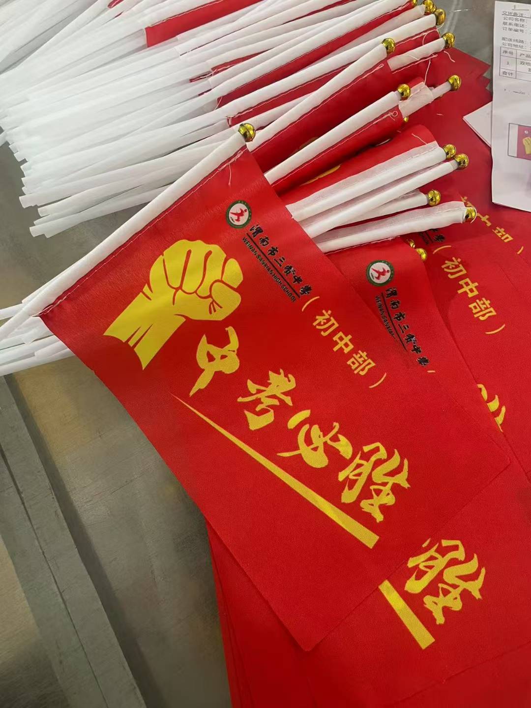 手摇旗制作:常用材质为旗帜布(春亚纺),具有表现力好、轻盈飘逸、用途广泛、双面透印等特点。制作工艺采用数码喷印技术,单面印刷双面渗透,经高温固色,色彩鲜艳,着色牢固,不掉色可水洗。